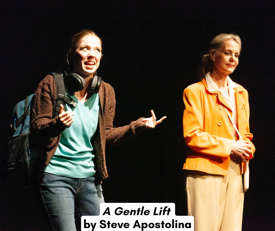 A Gentle Lift offers wisdom with wit. Natalie Sampson’s Alison is all nerves and skepticism and Sheila Strehle’s Woman is serene and ambiguous. The stalled elevator transforms into a crossroads and their bond deepens over sharp dialogue and shared experiences. When the elevator jolts back to life and Adam Nyhoff’s character steps in, it’s clear that something in Alison has shifted. Smartly written, subtly performed and very profound.