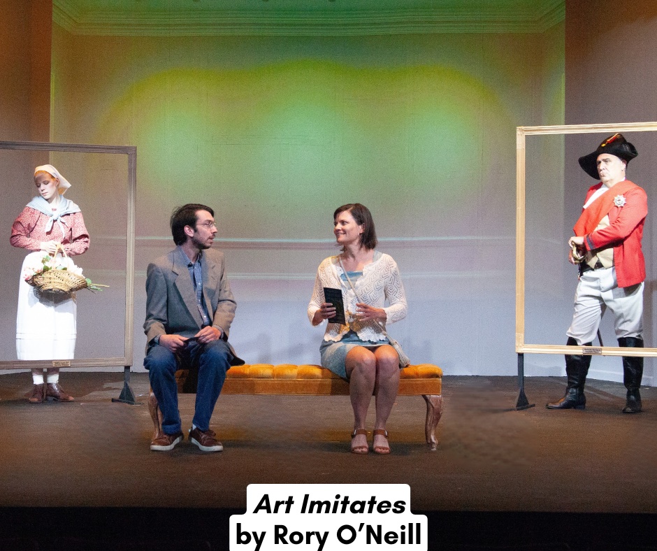Think Night at the Museum meets romantic comedy. Joey Tirado’s Connor and Ines Kreitlein’s Ella are mismatched art museum-goers fumbling their way through a first date. Two paintings— Mathilda, played by Natalie Sampson, and Bernard, by Michael Cimino — come to life with laugh-out-loud commentary. The wardrobe evokes 18th century paintings, and Cimino’s comedic delivery as Bernard brings the house down. A fun, artful closing to an evening steeped in humanity.