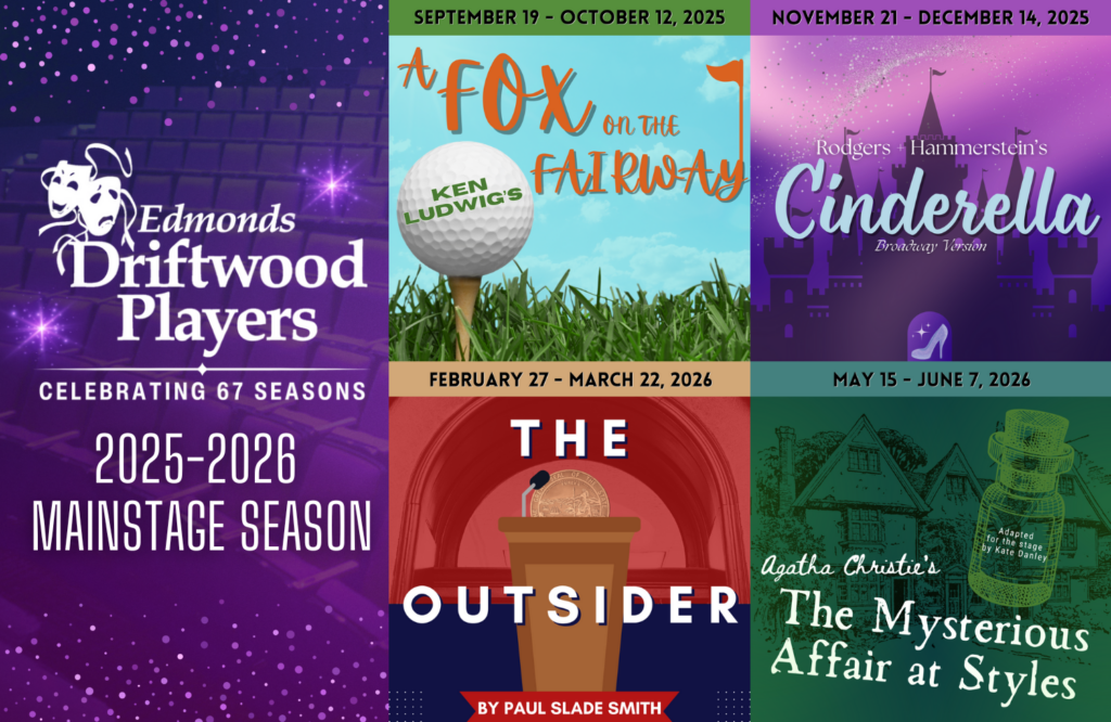 Don’t miss the announcement of Edmonds Driftwood Players’ 2025–2026 Season 67, featuring four mainstage productions ranging from classic farces and Broadway magic to political satire and an Agatha Christie whodunnit!