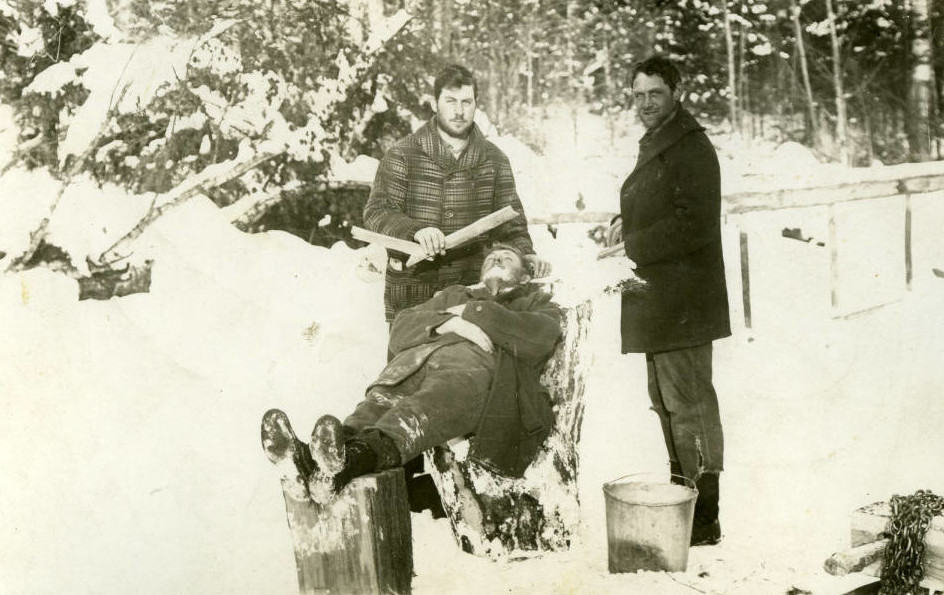 When the lice became too “itchy,” the loggers would boil their clothes on Sunday to get rid of the lice. In some cases, loggers recounted that many of the loggers never took a bath. They felt washing your hands and face was enough, and it was unhealthy to bathe, especially in the fall and winter, as they feared contracting pneumonia.