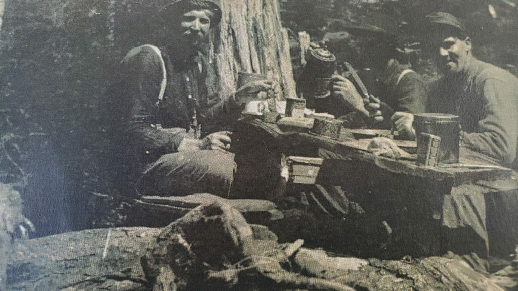 This article was researched and written by Byron Wilkes. Thanks go to all the institutions credited beneath the photos and for discussions with the Journal of Forest History regarding camp life in the late 1800s.