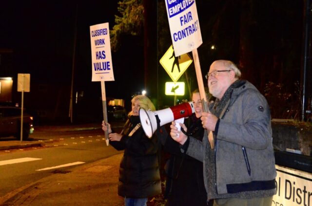 “Office personnel are the heartbeat of this district,” said Cindy Bartlette, an office manager at Edmonds Elementary School and union negotiator. “We’re in every school, every office, including the District office, making sure the work gets done. We’re the first voices families hear when they call for help. …We keep this District moving even when it feels like no one notices. We’ve given our time, our energy and our hearts to this District. We’ve done it through budget cuts, short staffing and endless demands.”
