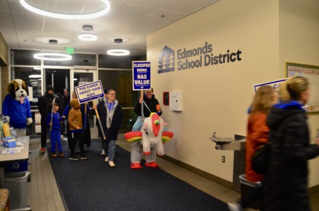 It’s been eight months since members of the Edmonds School District office personnel union first sat at the bargaining table with the District. Union members say the District rejected 39 of the union’s 61 initial proposals, leading the union to file for mediation with the state. After about 11 bargaining sessions and six hours of mediation, there’s still no contract to replace the previous one that expired in August.