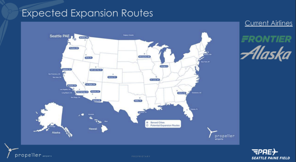 Looking ahead, Propeller Airports aims to expand its route map to add major eastern hubs including Chicago, Dallas and Atlanta for better connectivity, Brennan said. Charleston, South Carolina, is also a significant target due to Boeing’s operations in both South Carolina and Washington, ensuring a base of “guaranteed customers.” International travel, including flights to Canada, is “way down the road,” Brennan said, contingent on the airport building a Customs and Border Protection facility.