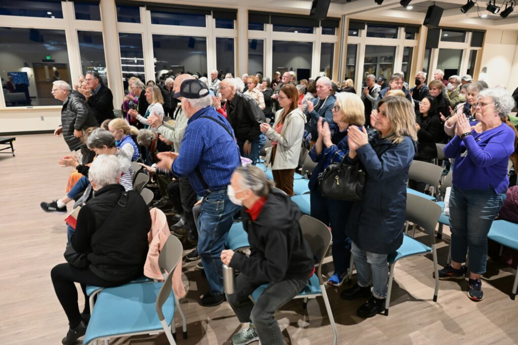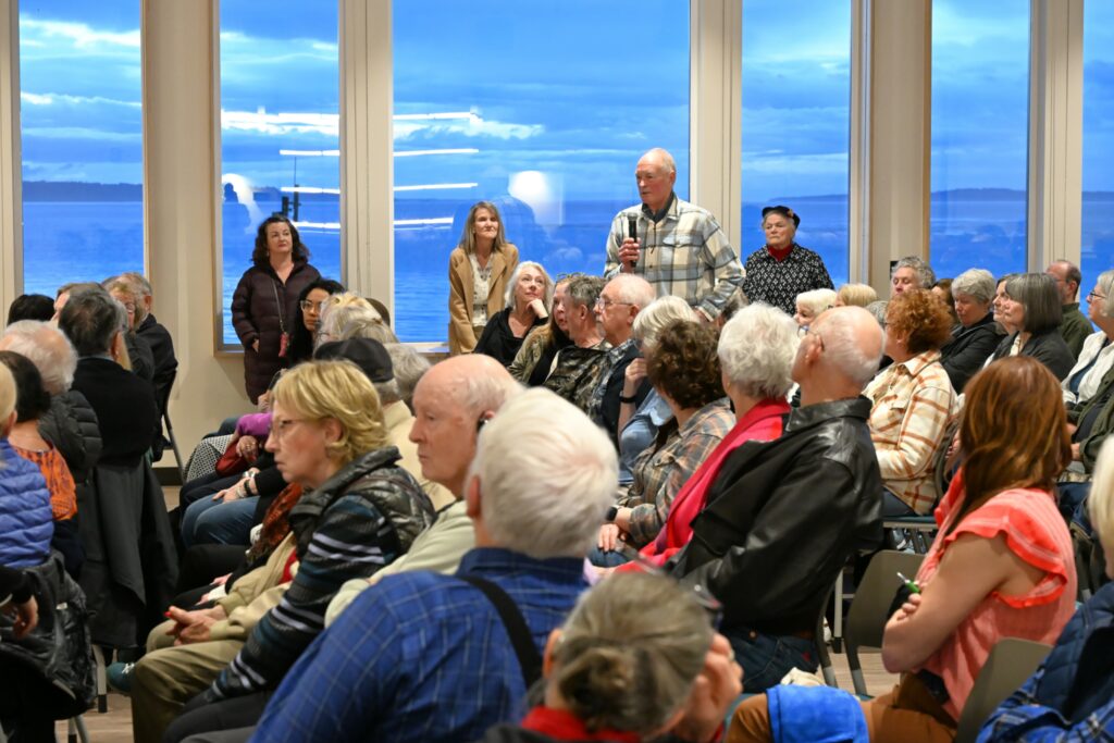 It was an emotional “first” for the monthly author/speaker series at the Edmonds Waterfront Center Thursday night: The audience of approximately 120 people gave Vietnam War veteran and operating room nurse Sarah L. Blum a standing ovation after she finished her presentation.