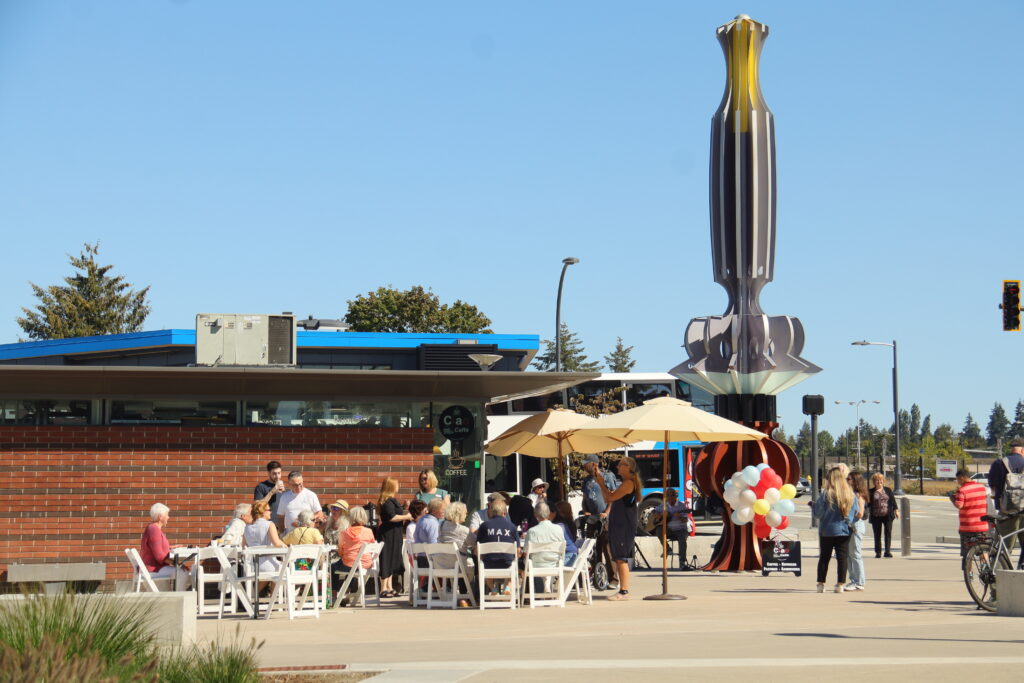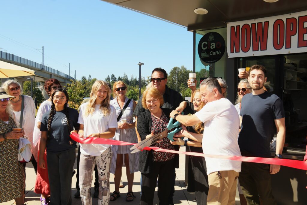 Ciao Caffé owners Nabil and Haifa Alhussieni joined Lynnwood Mayor Christine Frizzell and members of the Lynnwood Chamber of Commerce and the public at the ribbon-cutting ceremony Friday at the Lynnwood Transit Center.